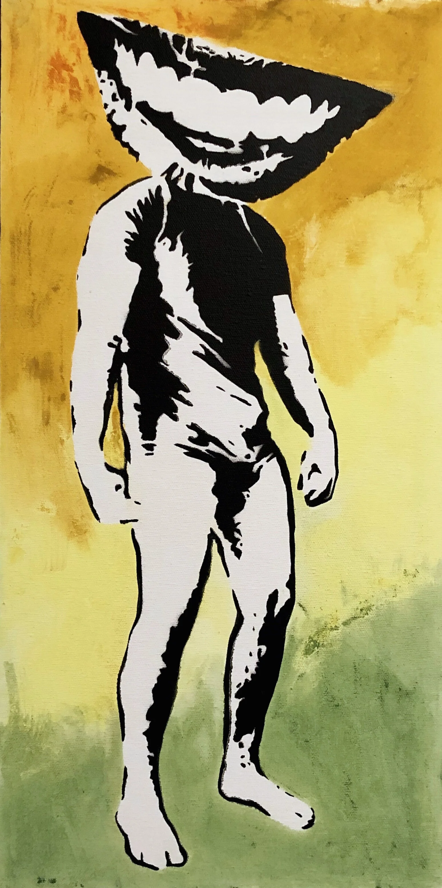 Spray paint and watercolor on canvas