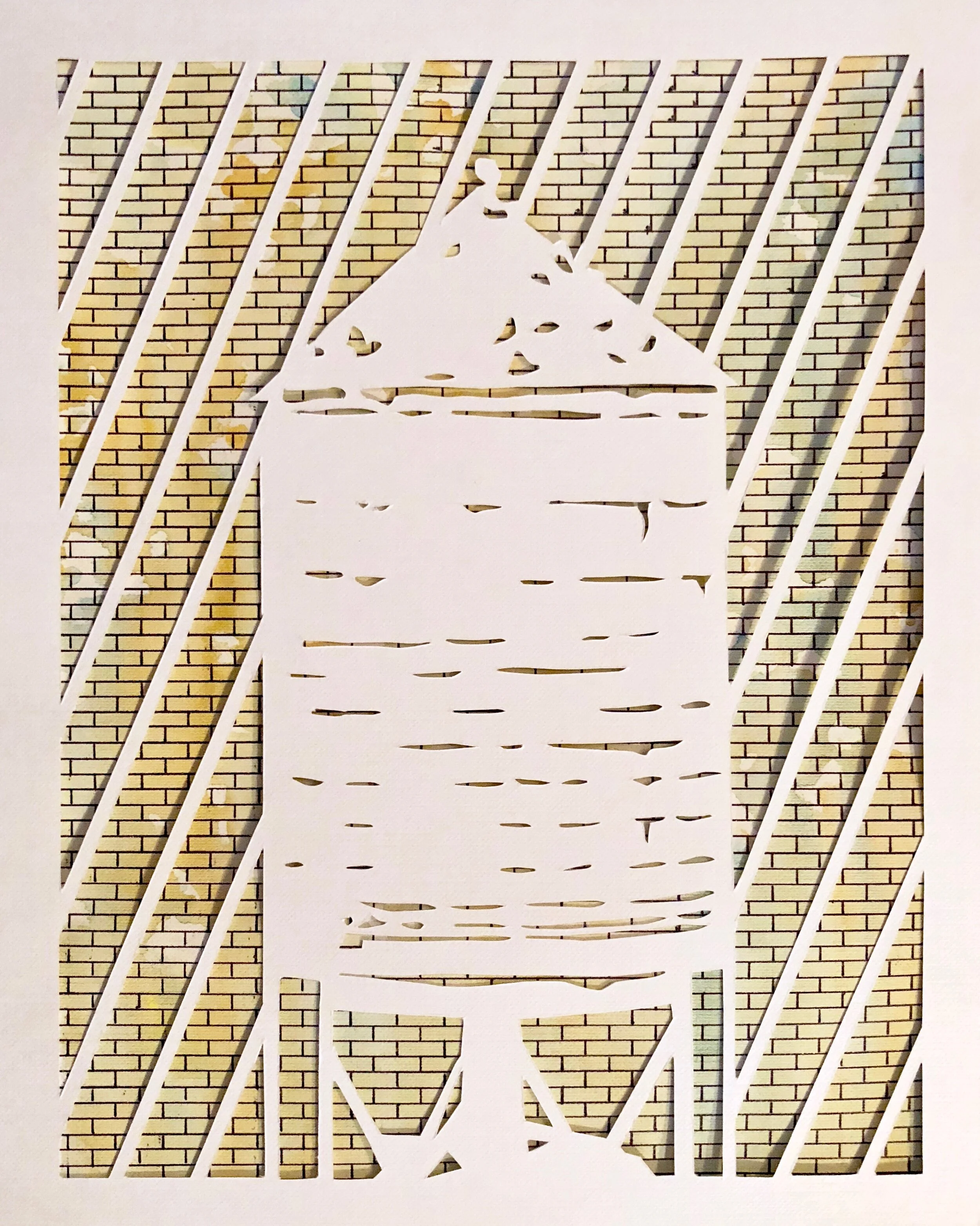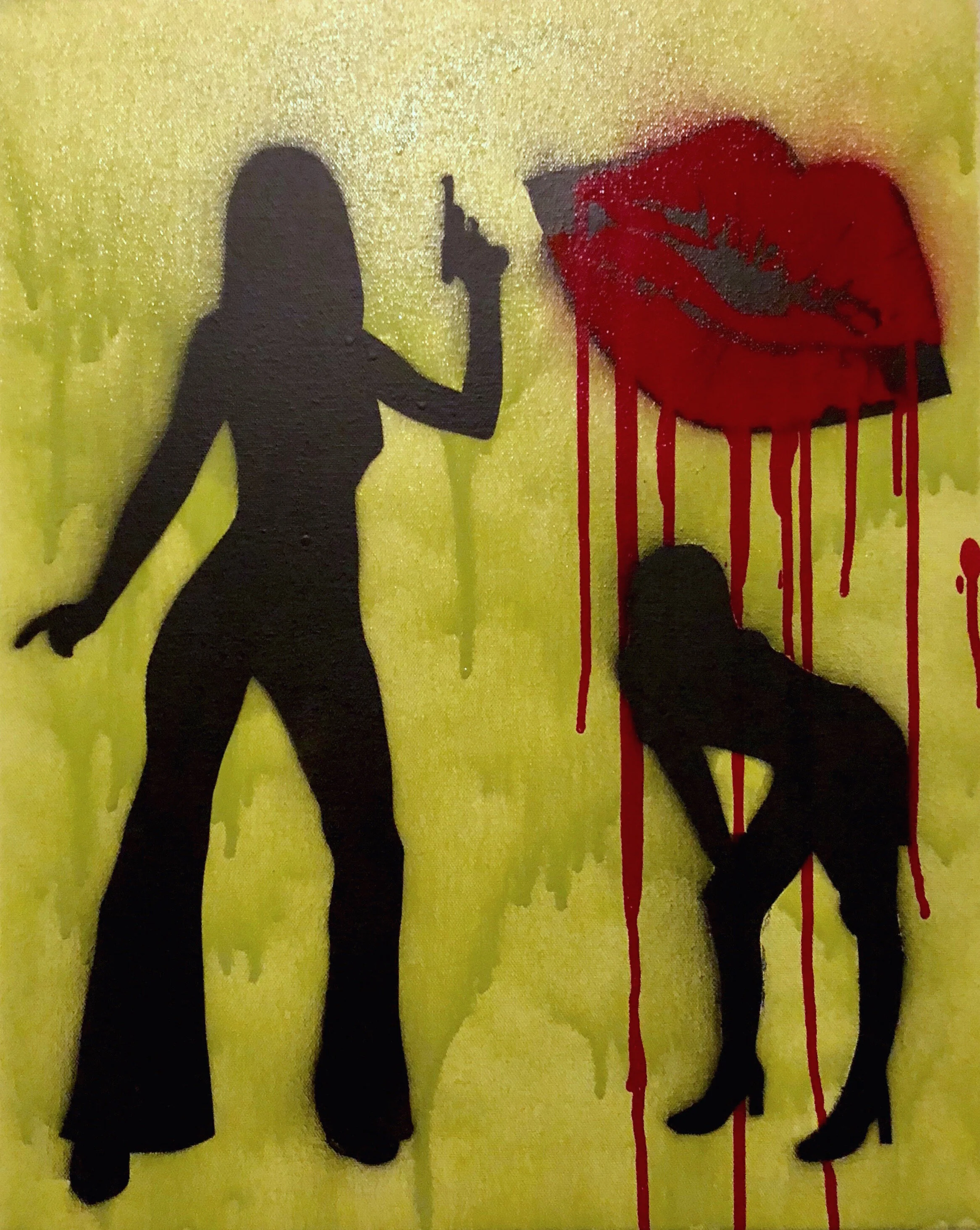 Spray paint, acrylic, enamel, and watercolor on canvas